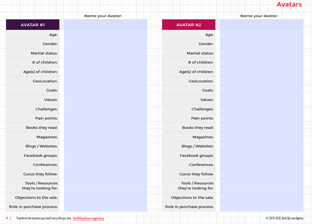 Below is an image of the tool that my agency uses when mapping out ideal customers and avatars for our clients -- as you can see it is detailed and comprehensive.