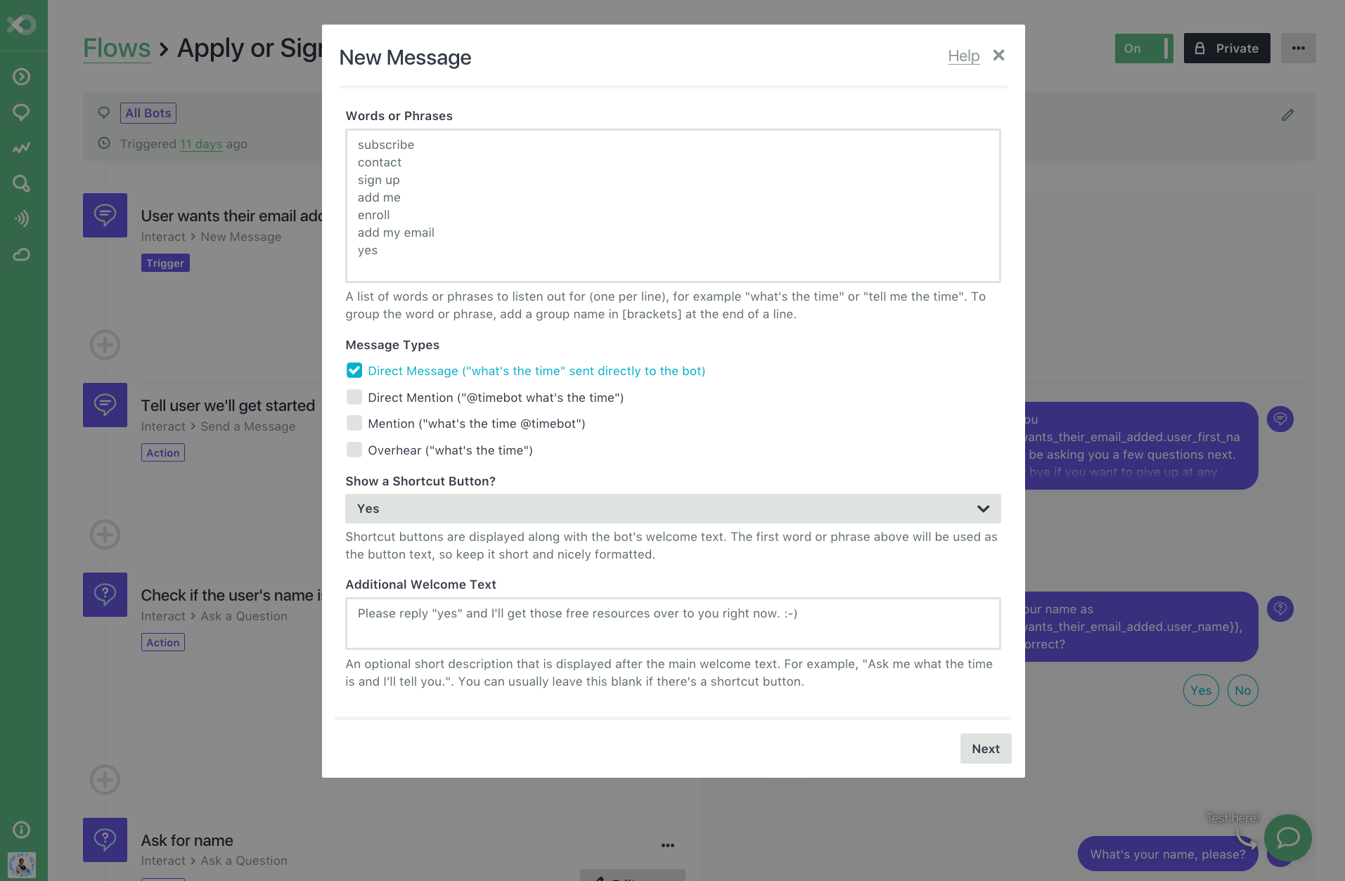 How to Create A Facebook Bot Integrated With Infusionsoft_key word for first message