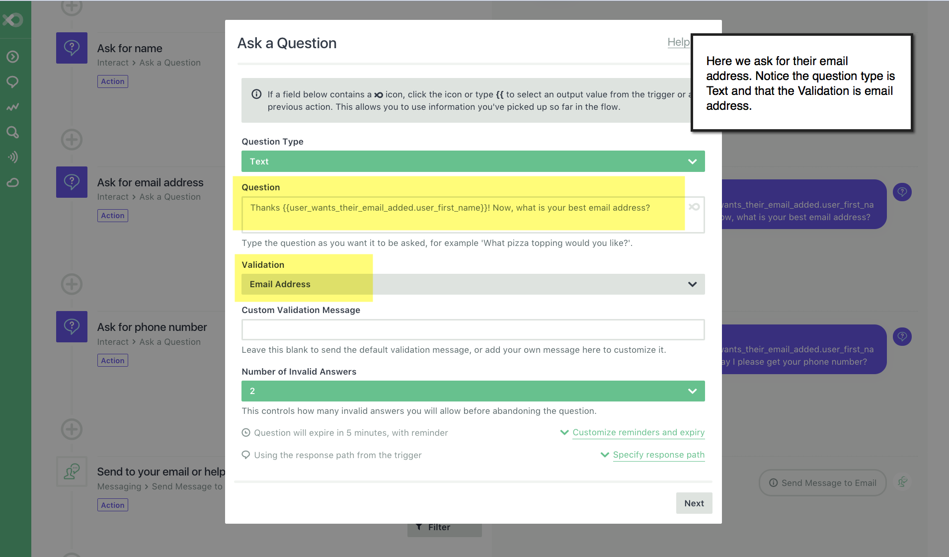 How to Create A Facebook Bot Integrated With Infusionsoft_Ask For Email Address
