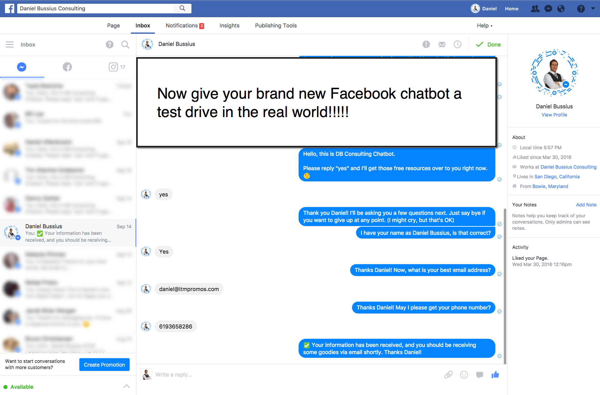 How to Create A Facebook Bot Integrated With Infusionsoft_Chatbot Test Drive